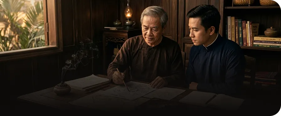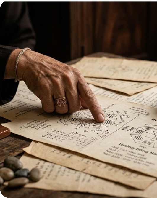 Thầy kết hợp tinh hoa phong thủy truyền thống cùng tư duy ứng dụng hiện đại, giúp tối ưu không gian sống – kinh doanh – tâm linh